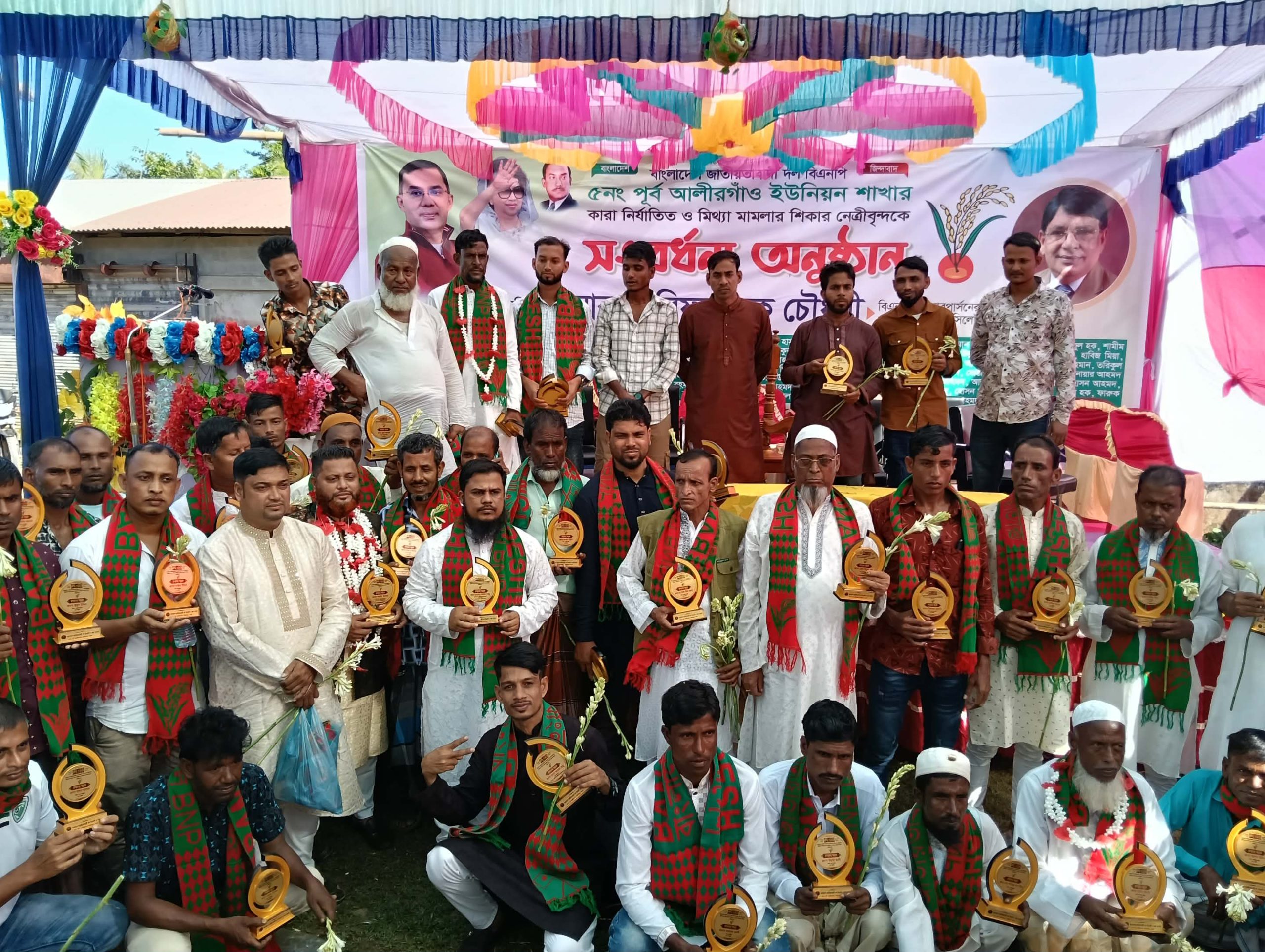 সংবর্ধনায় ৮০ জন কারা নির্যাতিত নেতাকর্মীকে ফুল ও ক্রেস্ট দিয়ে সম্মাননা প্রদান করেন আরিফুল হক চৌধুরী।