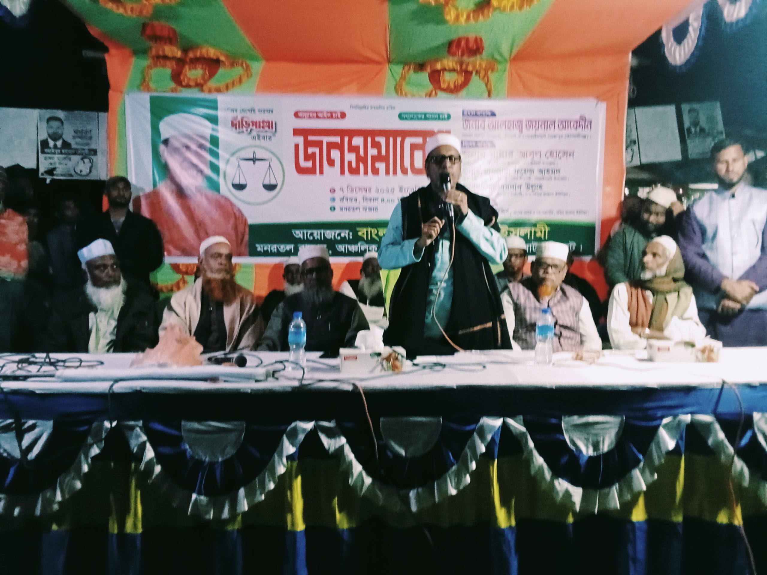 তিনি গতকাল রবিবার বাদ মাগরিব স্থানীয় মনরতল বাজারে বাংলাদেশ জামায়াতে ইসলামী মনরতল বাজার আঞ্চলিক শাখা আয়োজিত দাঁড়িপাল্লার সমর্থনে জনসমাবেশে প্রধান অতিথির বক্তব্যে এসব কথা বলেন।